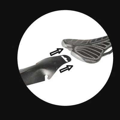 Pour ranger le garde-boue une fois que vous n’en n’avez plus besoin, nous proposons la sacoche de selle clipsable.