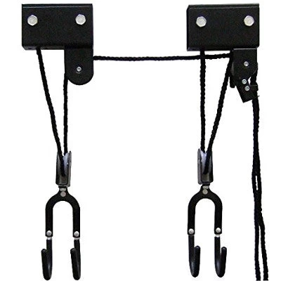 Ce rangement se met au plafond et est conçu avec un système de poulie pour monter ou descendre son vélo facilement. On y retrouve en plus un système de verrouillage inclus pour que le vélo se fixe sans risque.