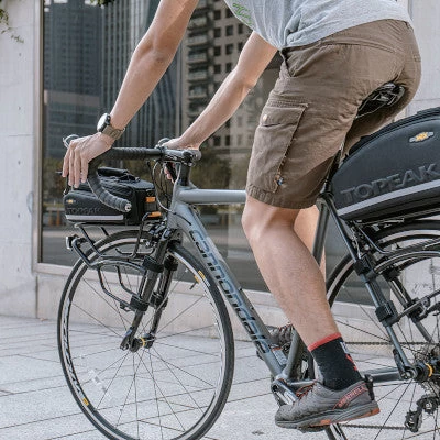 Le porte-bagages avant TetraRack R1 de Topeak est destiné aux vélos ayant une fourche rigide et sans oeillet. Il est compatible avec un grand nombre de vélos parmi les vélos de route, les vélos de cyclotourisme ou randonneuses. Grâce à ce porte-bagages, vous pouvez ainsi équiper votre vélo de sacoches vélo et partir en voyage à vélo peu importe la configuration de votre cycle. De plus, le plateau supérieur du porte-bagages glisse afin de s’ajuster à la géométrie du cadre de votre vélo. Vous pouvez ainsi rendre le plateau supérieur parallèle à la route peu importe l’inclinaison de votre fourche. Attention, ce porte-bagages n’est en revanche pas compatible avec les vélos ayant des fourches en carbone, ni avec les vélos équipés d’un système V-Brake.